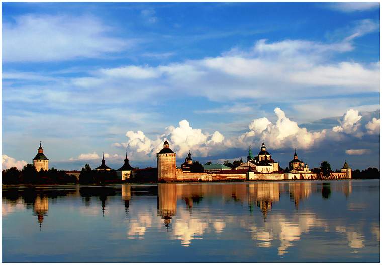 Мы уплыли на крошечном пароходике (рейсовом, не туристском) в Кириллов и Ферапонтово (ох, какие места), и ходили на гору Мауру, с которой видно с одной стороны широкую Шексну с пароходами и баржами, а с другой – Кирилло–Белозерскую Лавру на тихом озере. У меня тот вид прочно ассоциируется с Рубцовским: